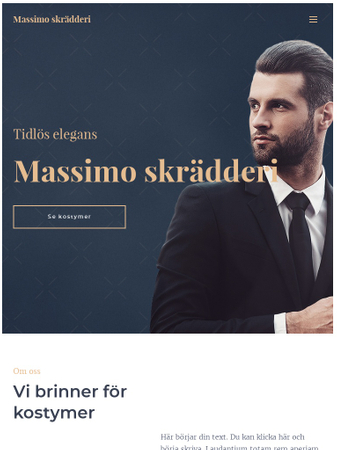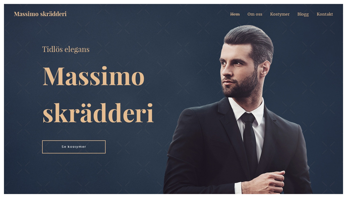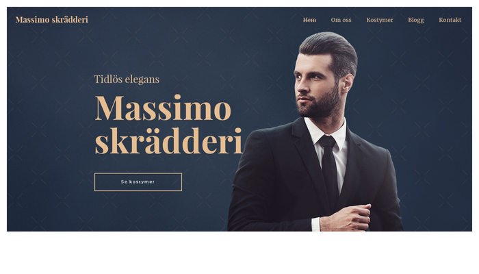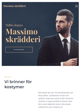 Bli inspirerad av denna eleganta mall. Designen är perfekt för skräddare och låter dina kunder förälska sig i dina produkter på ett ögonblick. Skapa den perfekta webbshopen för dina skapelser och glöm inte att berätta lite om ditt företag.