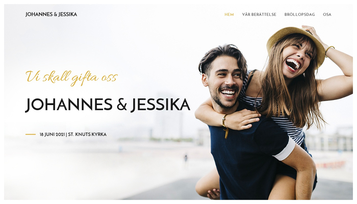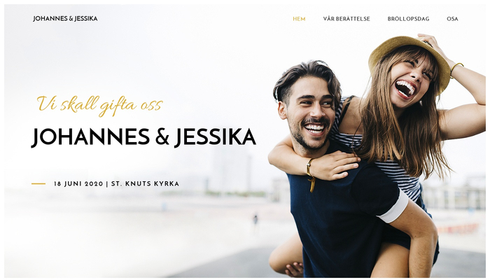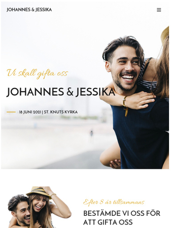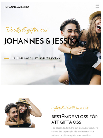 Denna livliga mall hjälper dig med dina bröllopsförberedelser. Dela berättelsen om er kärlek med gästerna, beskriv platsen och ta reda på vem som kommer.
