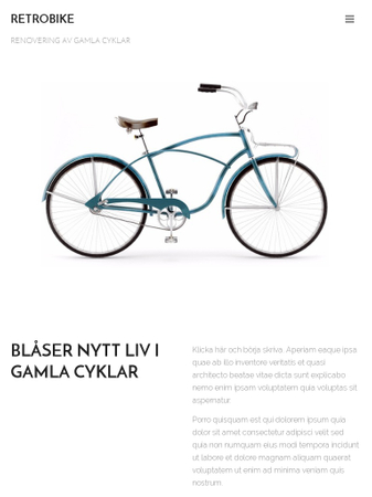 Använd denna mall för att framhäva dina färdigheter i att renovera äldre cyklar, möbler och annat. Mallens intuitiva layout gör det lätt för besökaren att hitta den information de behöver. Lägg till bilder på din produkter, klämmiga texter och publicera dem online på nolltid.