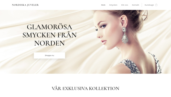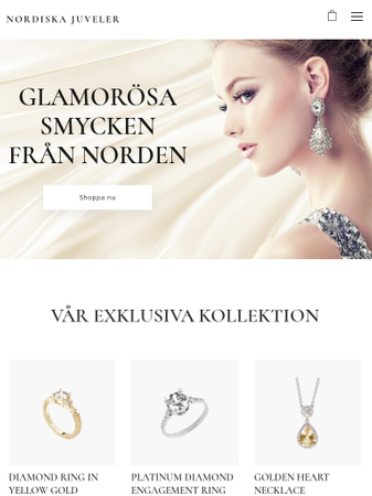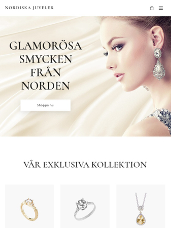 Starta en online smyckesbutik och presentera dina luxuösa juveler. Denna stiliga mall är perfekt för att visa fram dina glittriga smycken. Lägg till beskrivningar och fina foton på dina produkter och börja sälja till dina kunder redan idag!