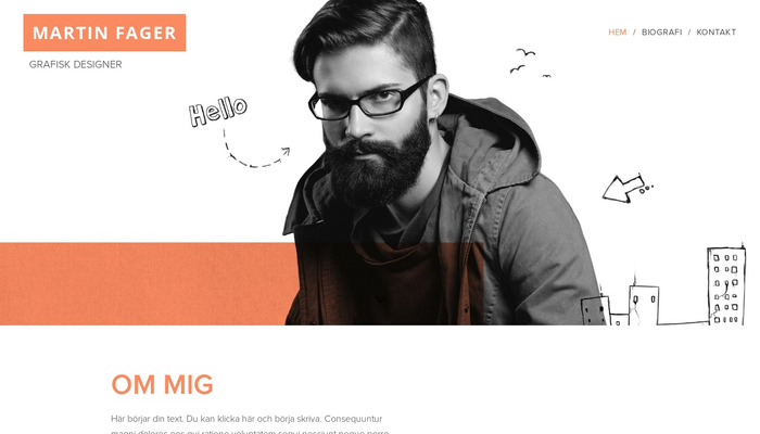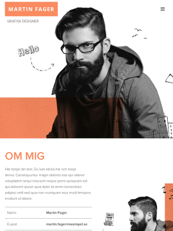 Behöver du en mall för att presentera ditt CV eller Portfolio online? Då är denna designmall perfekt för dig. Lägg endast till kunskaper, erfarenheter och alster och din nya hemsida är klar att lanseras.