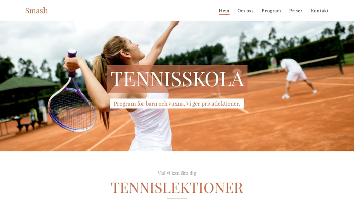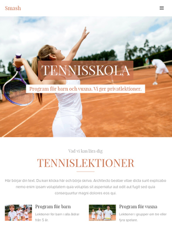 En mall, perfekt för alla sportskolor, tränare och sportklubbar. Vacker design och välstrukturerad utformning, gör det lätt för dig att presentera program, information om coacher och priser för kurser. Använd sektionen "Vanliga frågor" för att lägga in mer information.